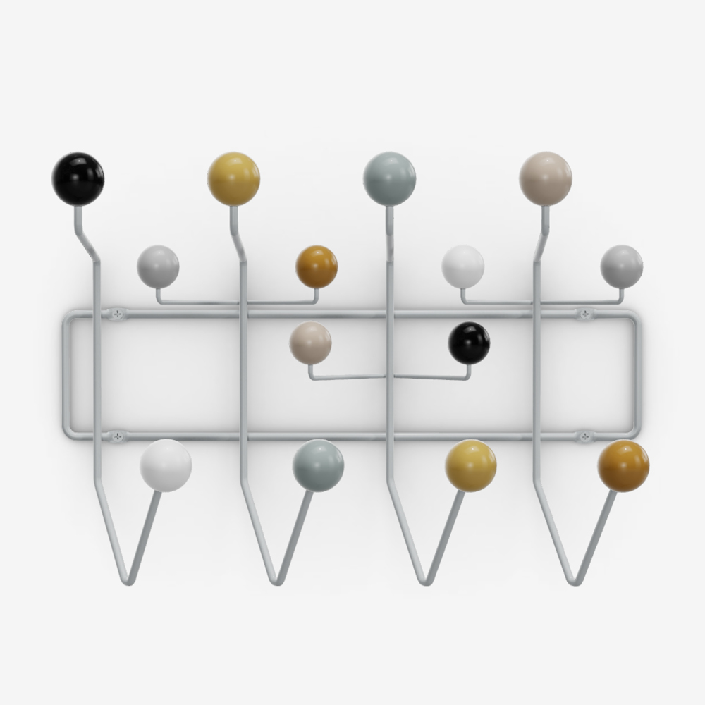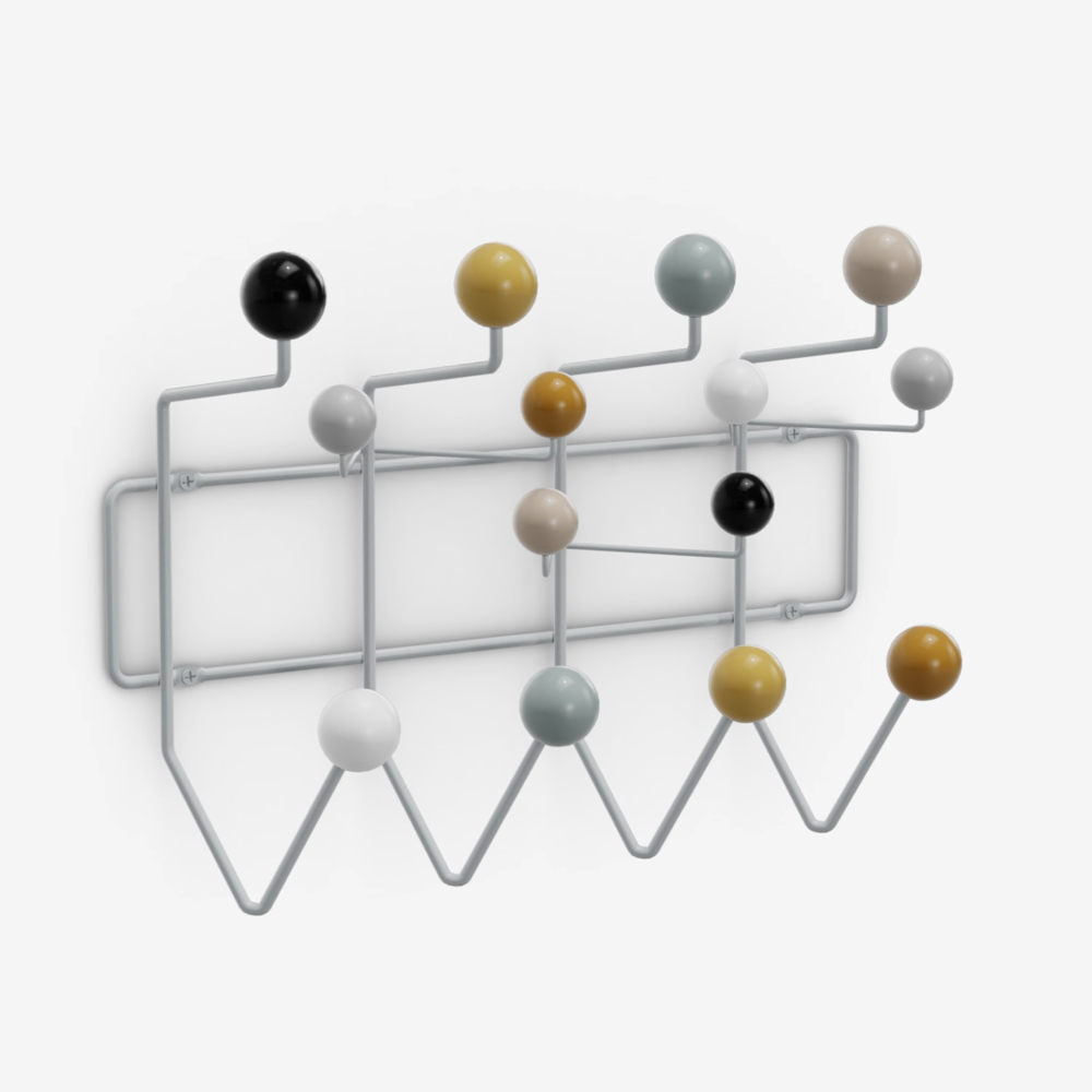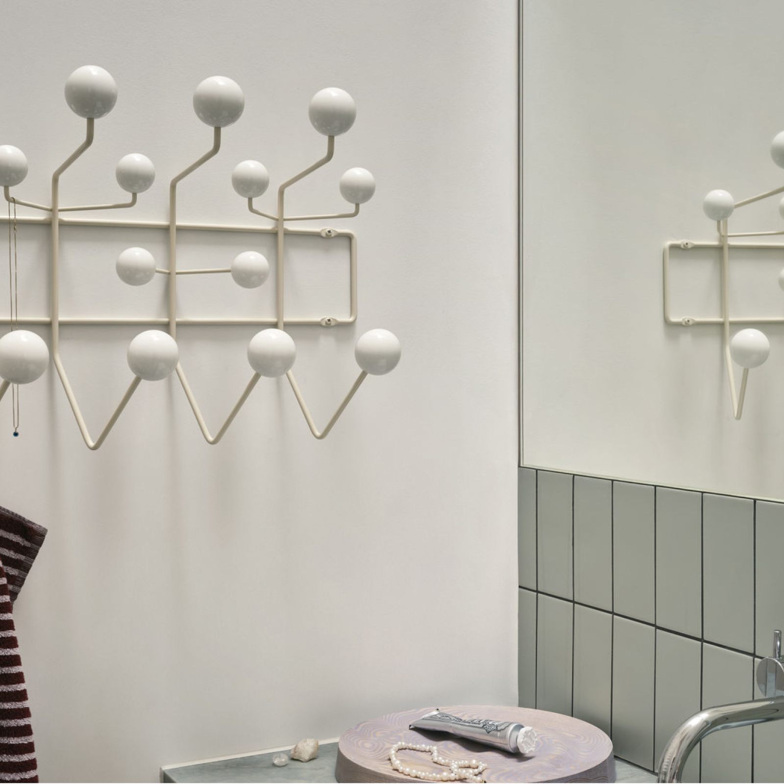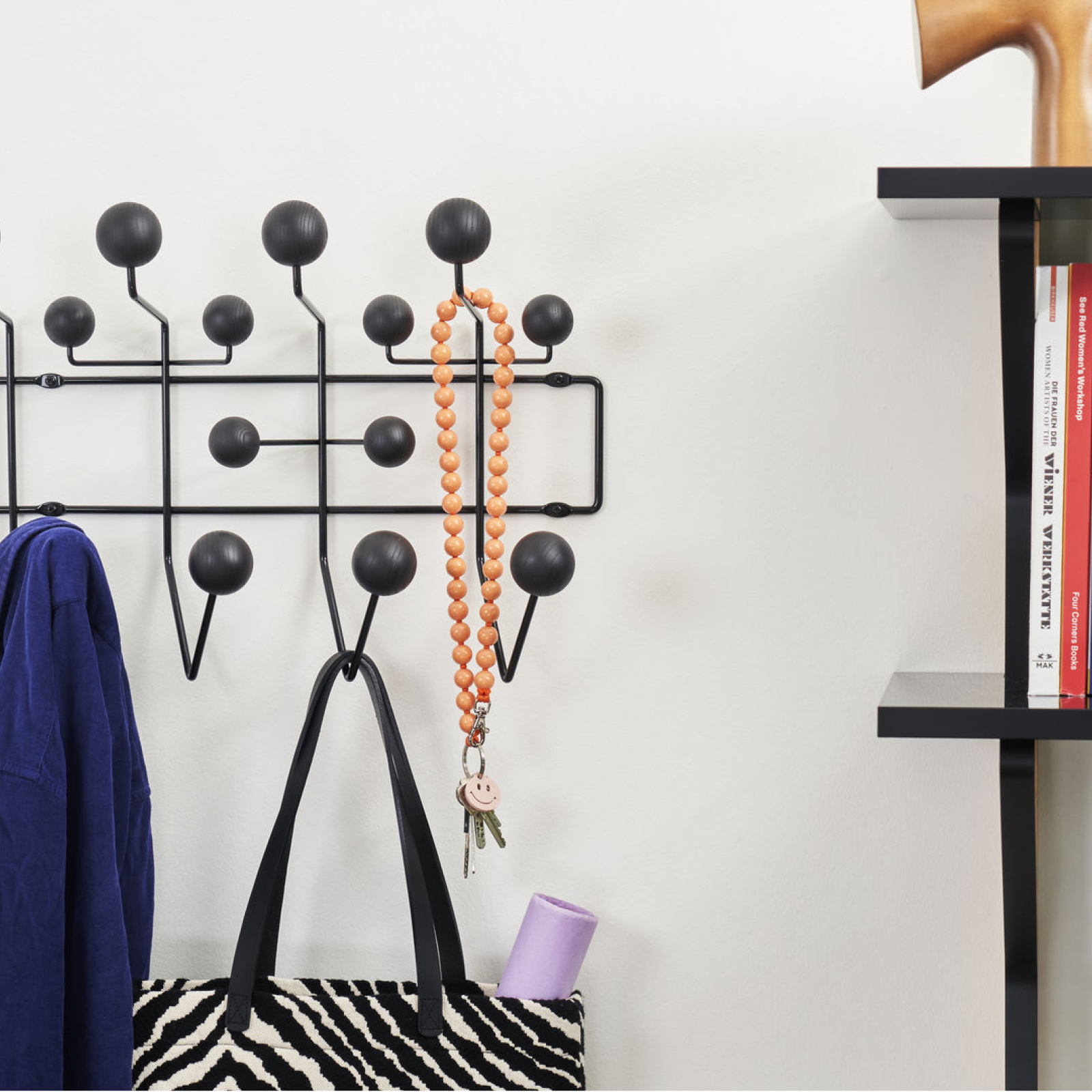 The ‘Hang it all’ coat rack designed by Charles and Ray Eames, which comes in a variety of colour combinations, encourages children to literally hang up all their things. With its colourful wooden balls, ‘Hang it all’ is a cheerful alternative to conventional coat hooks – and not just in children’s rooms.