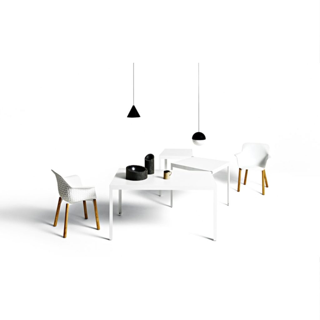 Model available in white with wooden legs.