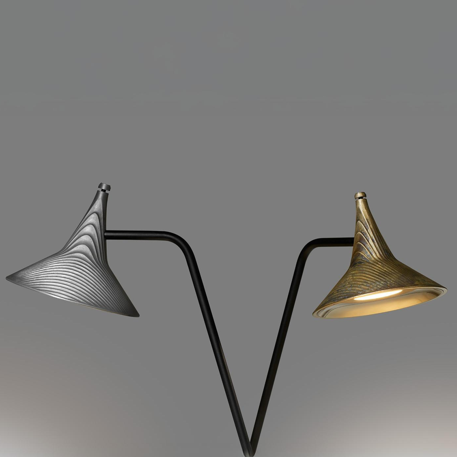 The Unterlinden family has been extended with new versions based on its characteristic head. The body of the lamp, made of die-cast aluminium or brass, has a unique finish on each model, the result of the natural oxidation process of the metal, which is stopped and fixed by a transparent finish. A highly efficient precision lens controls the LED light, generating professional lighting levels.