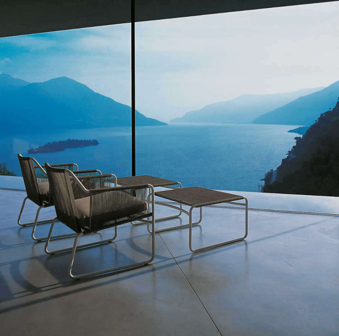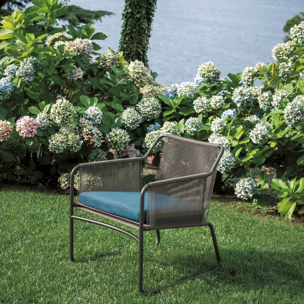 Los sillones HARP exaltan la elaboración artesanal: la estructura, de acero inoxidable pintado para exterior, está elaborada y soldada a mano, mientras que la cordelería, igualmente realizada a mano, es de tipo torcido de dos cabos de poliéster o acrílico de 3 o 7 mm de diámetro.