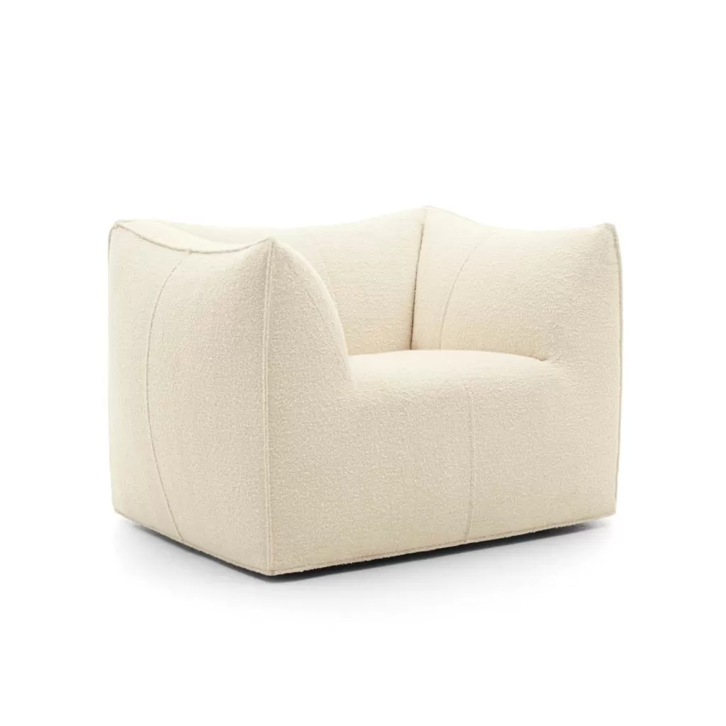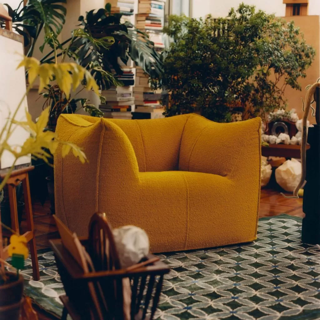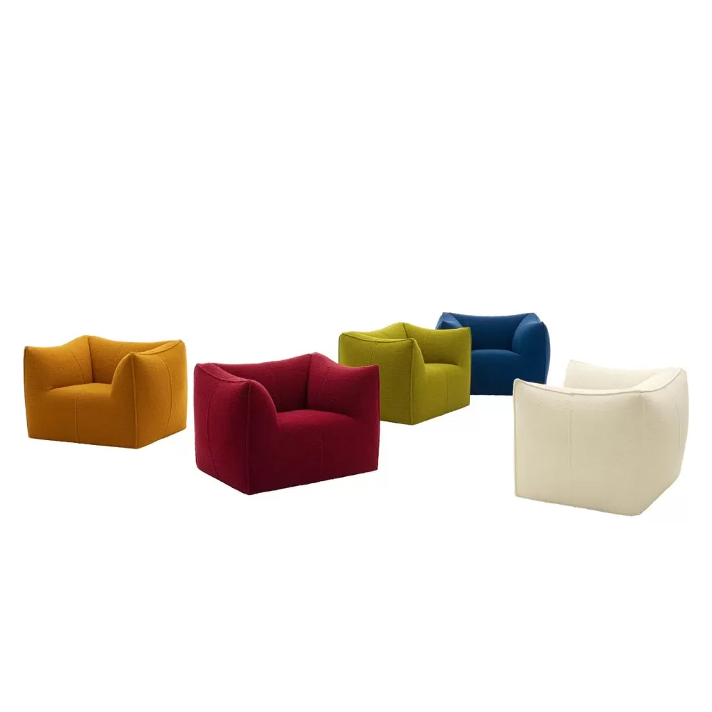 El sillón Bambola forma parte de la serie Le Bambole, diseñada originalmente en 1972 y galardonada con el Compasso d’Oro en 1979. Ícono de contemporaneidad atemporal y una de las expresiones más efectivas de la excelencia del Made in Italy, combinando investigación y creatividad, Le Bambole han brindado una respuesta muy personal al tema de los asientos. Lo que los hace especiales es la aparente ausencia de una estructura portante, la extrema naturalidad de la forma y la combinación de confort, suavidad y elasticidad que transmite su apariencia. Mientras que la construcción original se basaba en una estructura metálica incrustada en poliuretano, ahora los materiales utilizados son de última generación, comenzando con polietileno reciclado que da estructura. Un proyecto sostenible gracias a la elección de materiales y el método de construcción, que permite que los componentes de Le Bambole sean completamente desmontables y, por lo tanto, fácilmente reciclables.
