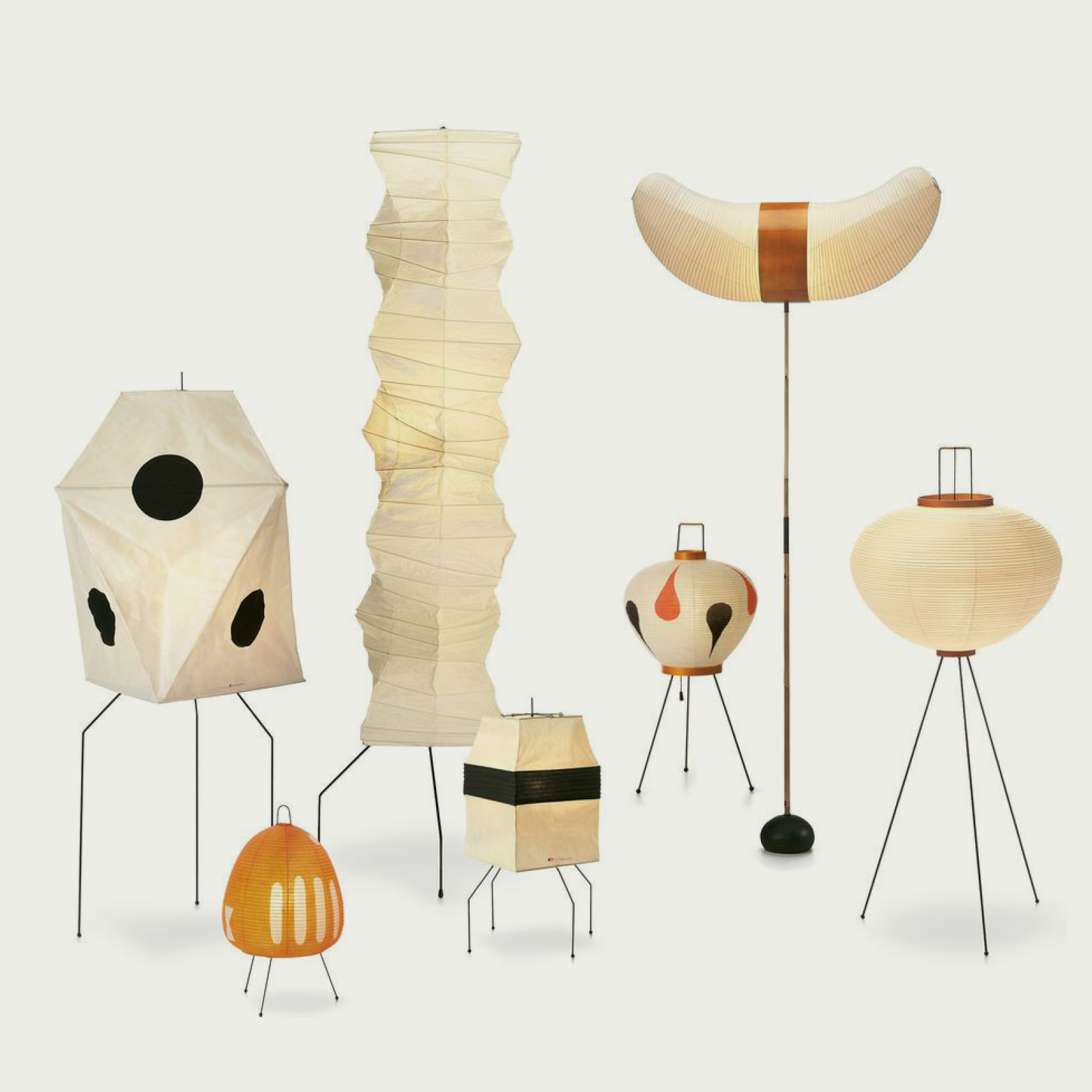Las Akari Light Sculptures de Isamu Noguchi son una serie de lámparas hechas a mano por artesanos japoneses con papel washi tradicional. «La crudeza de la luz eléctrica se transforma, gracias a la magia del papel, en la luz de nuestros orígenes: el sol». (Noguchi)
