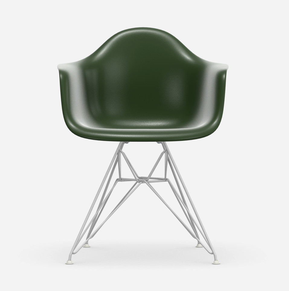 Desde el comienzo de la década de 1950, cuando Charles y Ray Eames diseñaron las Plastic Chairs, estas sillas se han convertido en iconos del modernismo americano de mediados del siglo XX. En concreto, la silla DAR (Dining Height Armchair Rod Base) destaca como un inimitable diseño clásico que combina ligereza y elegancia en su forma con estabilidad estructural en la intrincada construcción de cable de acero de su base «Eiffel Tower».