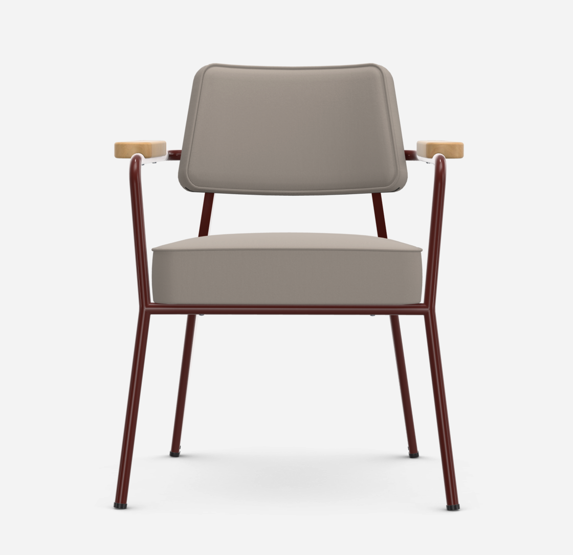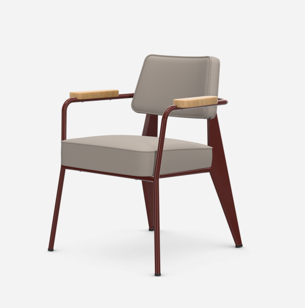 Fauteuil Direction es especialmente adecuada para sentarse a la mesa del comedor o como silla para la oficina doméstica. Su diseño refleja el característico vocabulario estético de Jean Prouvé, que se basa en los requisitos estructurales.
