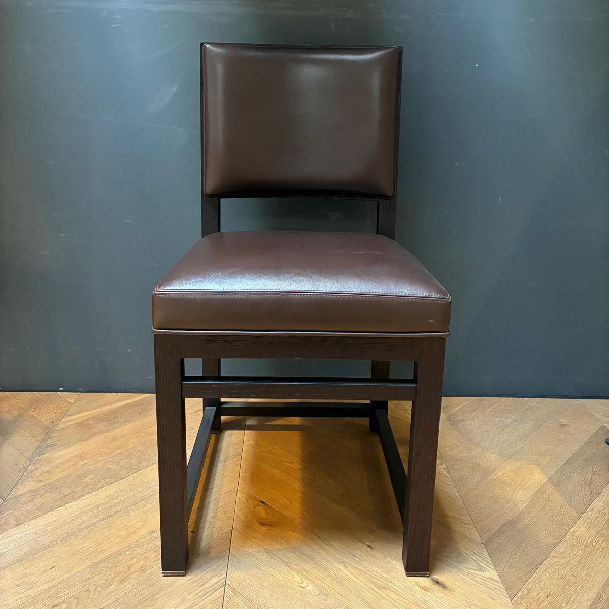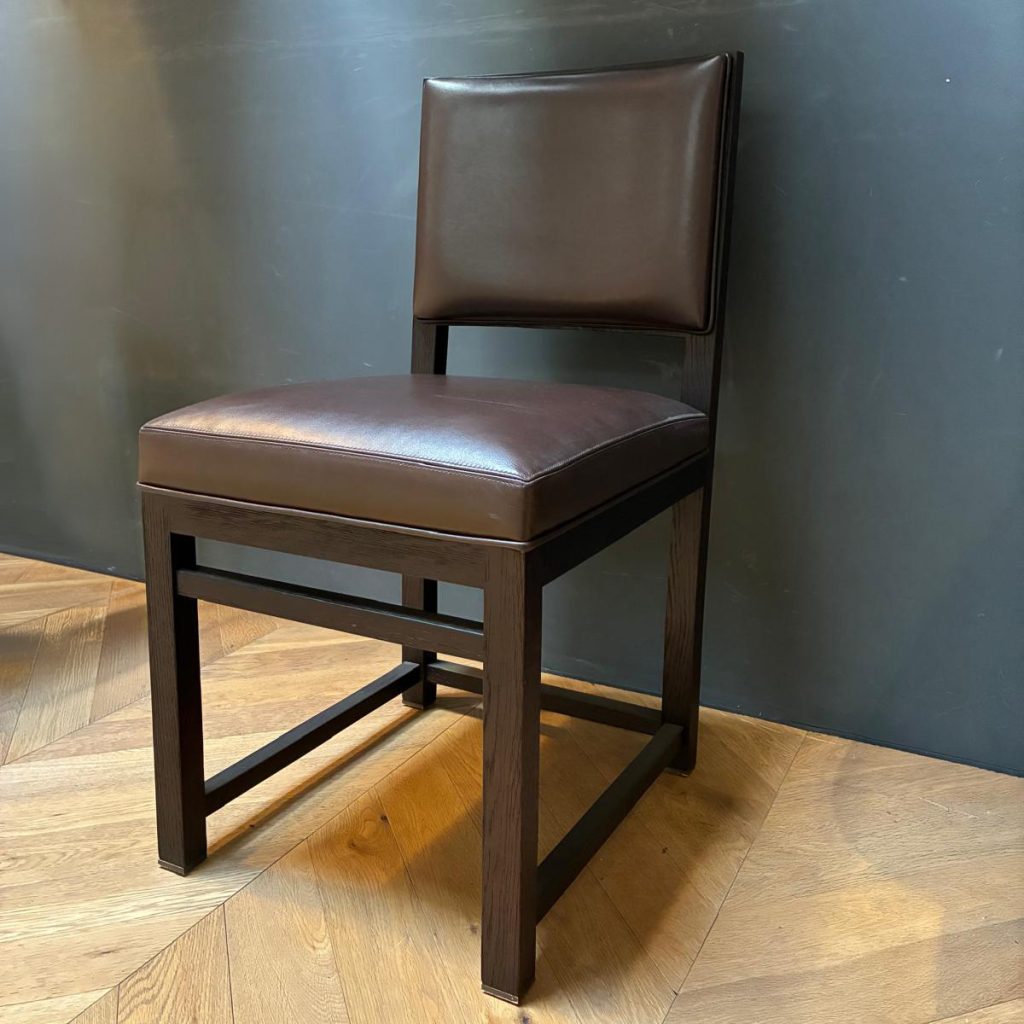 Roble negro con asiento de cuero color marrón.